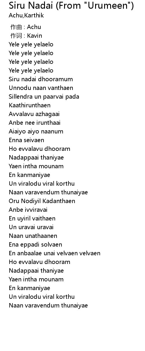 | [02:03.11] | Oru Nodiyil Kadanthaen |
