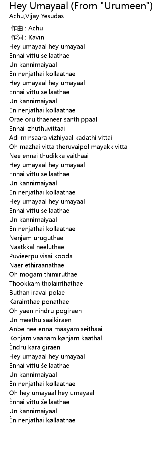 | [02:22.61] | Oh hey umayaal hey umayaal |