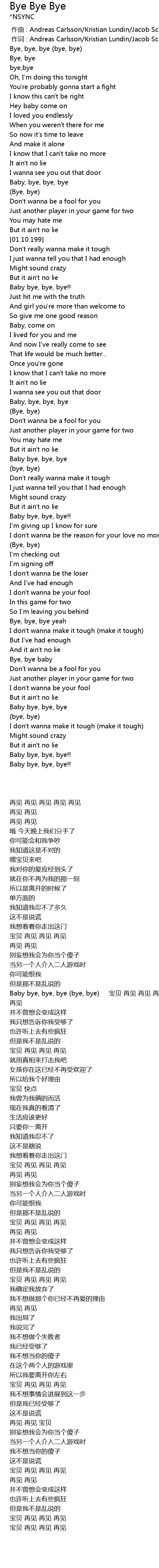 | [00:11.840] | Bye, bye, bye bye, bye |