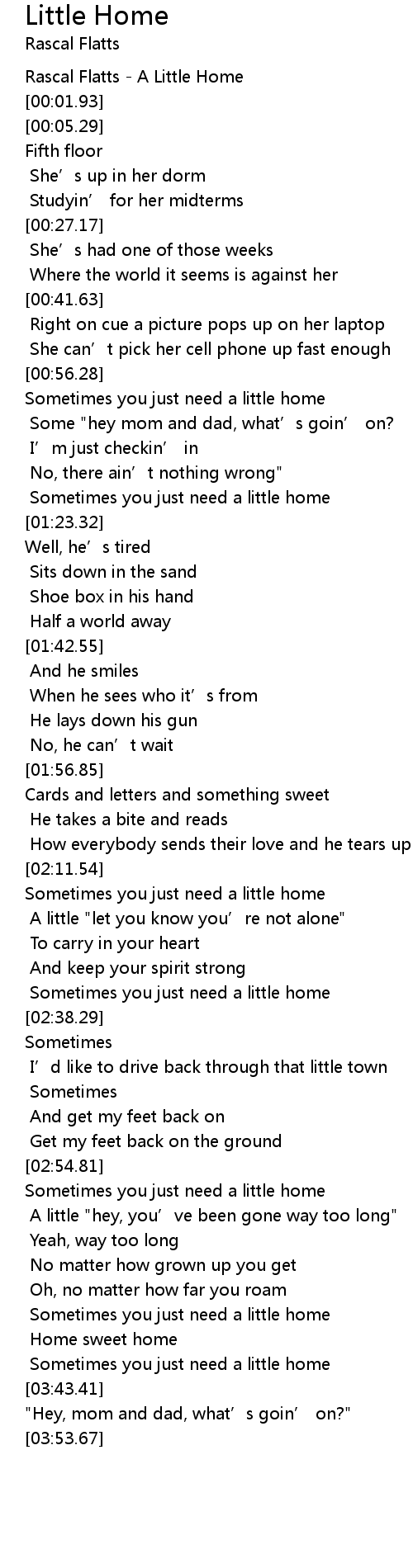 | [00:00.00] | Rascal Flatts - A Little Home |
