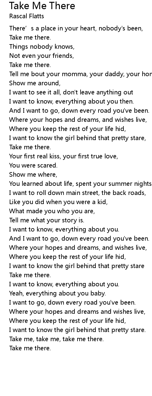 | [03:32.030] | Take me, take me, take me there. |