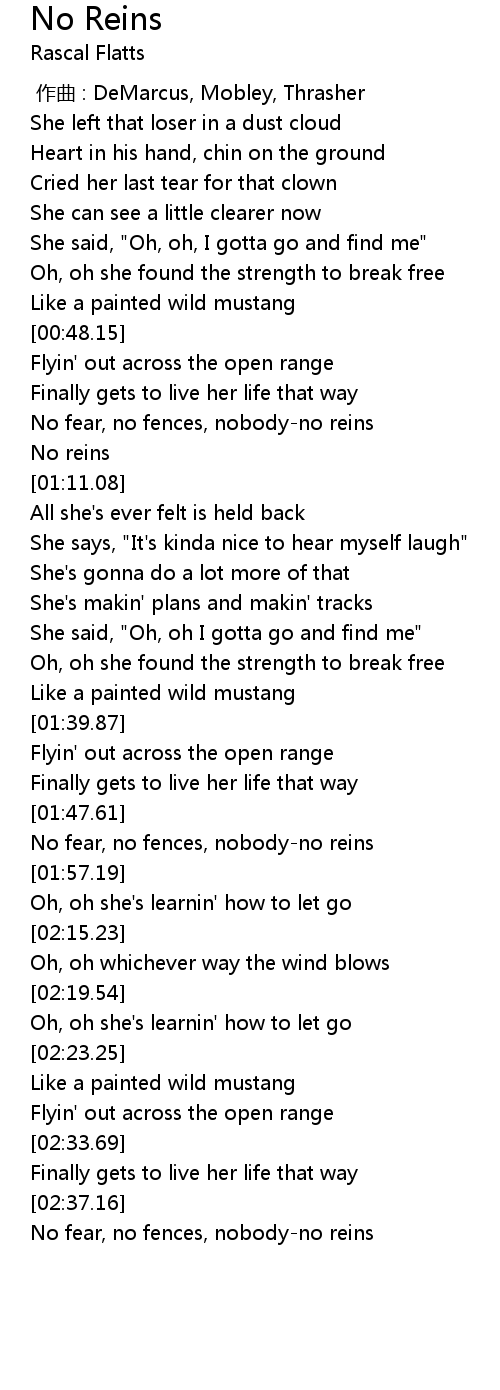 | [01:48.61] | No fear, no fences, nobody-no reins |