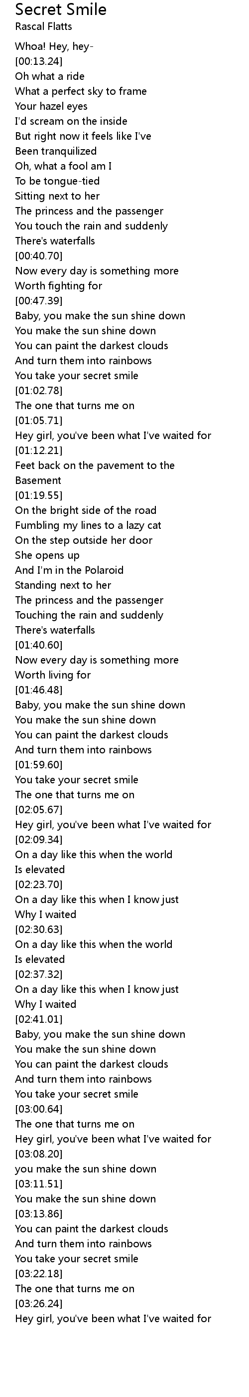You take your secret smile |