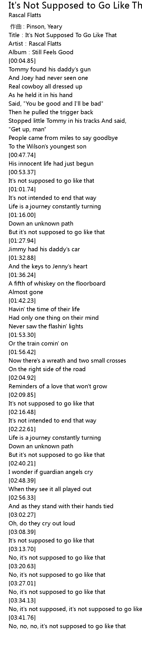 | [00:00.47] | Title: It' s Not Supposed To Go Like That |