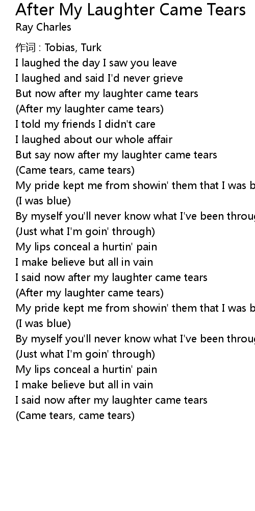| I said now after my laughter came tears | |