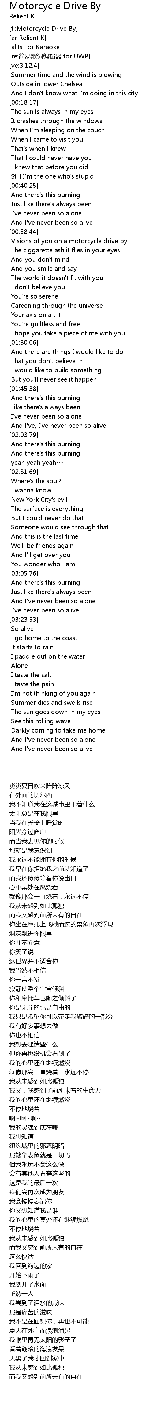 | [01:07.03] | Visions of you on a motorcycle drive by |