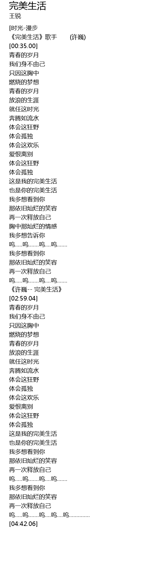| [00:15.00] | 《完美生活》歌手 (许巍) |