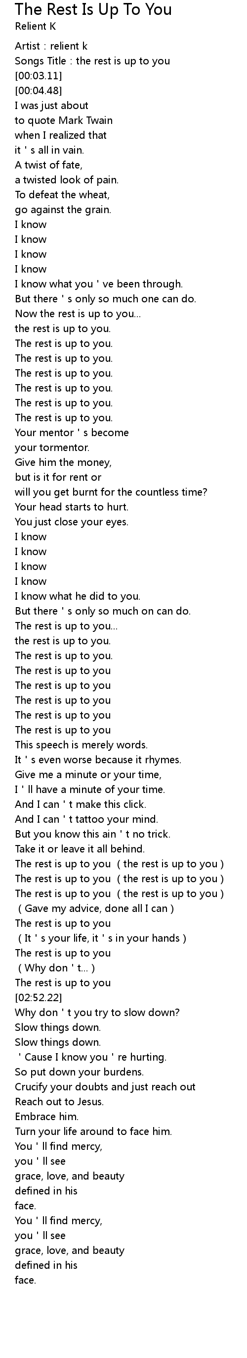 | [02:39.93] | The rest is up to you the rest is up to you |