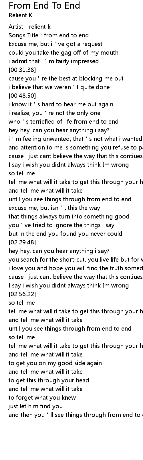 | [00:02.02] | Songs Title:from end to end |