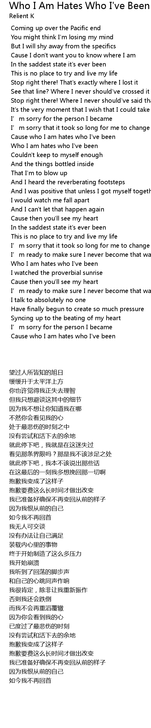 | [02:49.420] | Cause who I am hates who I' ve been |