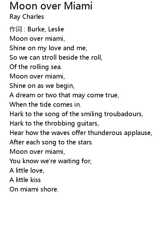 | Moon over miami, | |