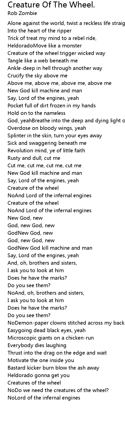 Creature of the wheel trigger wicked way |