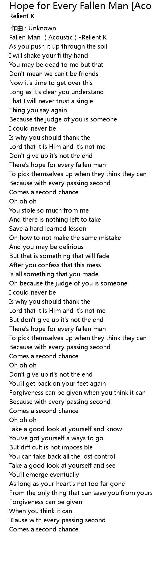| [00:01.10] | Fallen Man (Acoustic)-Relient K |
