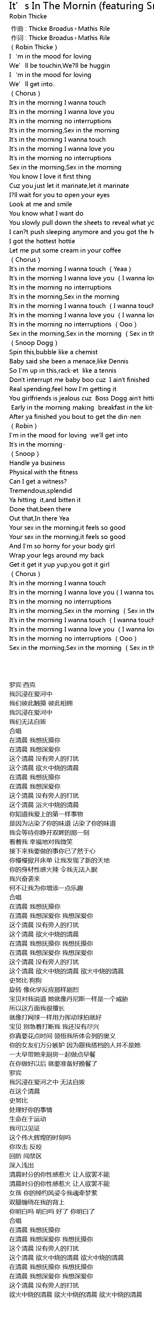 | [01:09.350] | It' s in the morning, Sex in the morning |