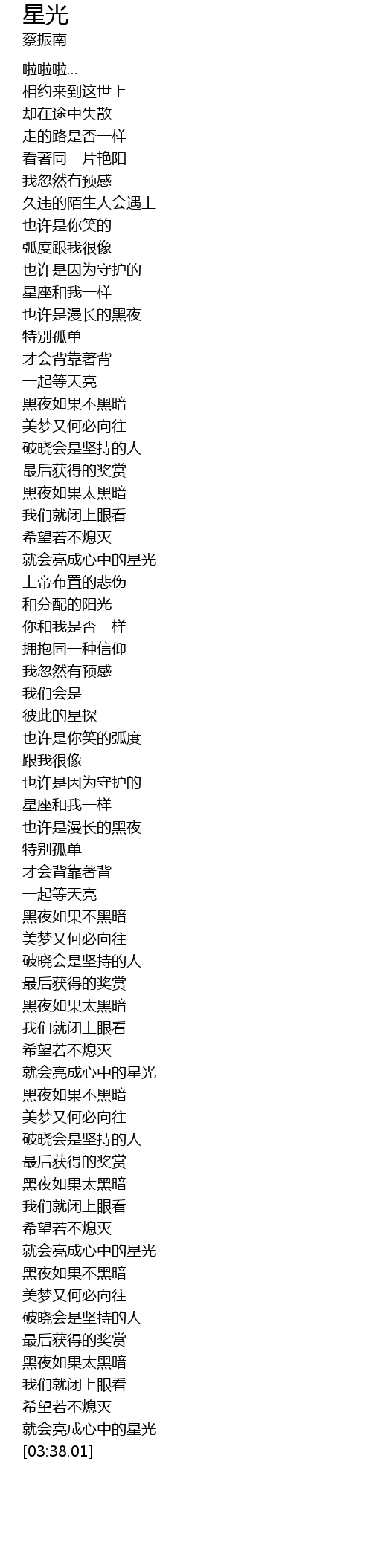 | [03:34.99] | jiù huì liàng chéng xīn zhōng de xīng guāng |