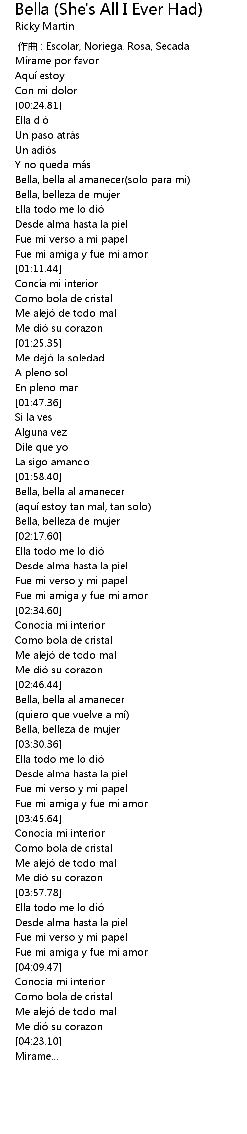 | [00:35.61] | Bella, bella al amanecer solo para mi |