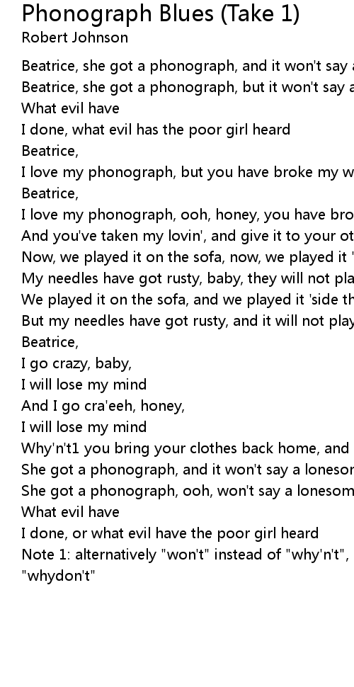 Beatrice, she got a phonograph, but it won't say a lonesome word |
