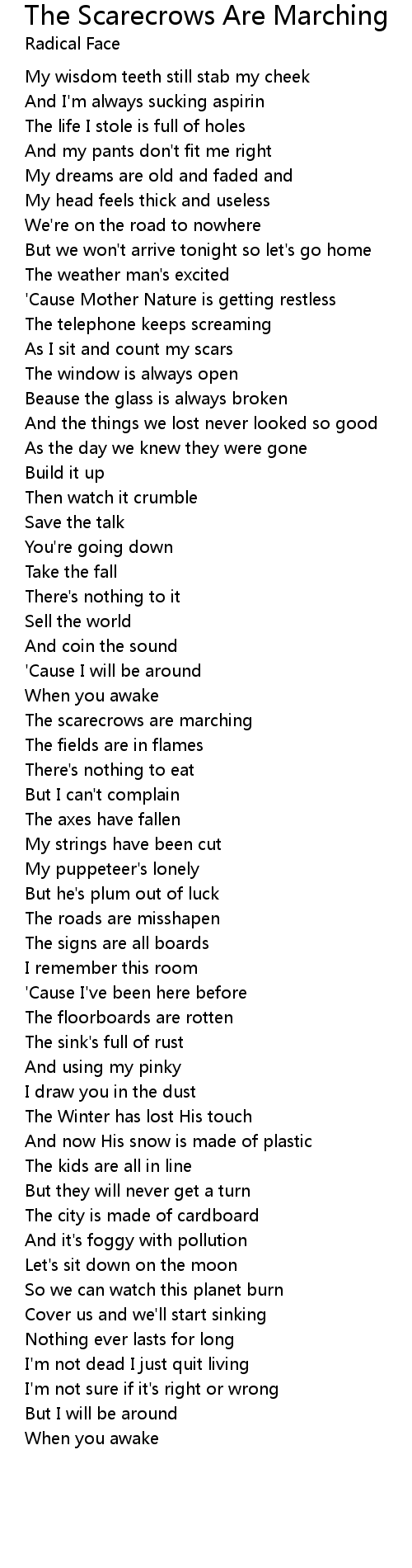 The Scarecrows Are Marching Lyrics