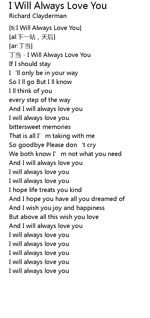| [00:00.200] | dīng dāng I Will Always Love You |