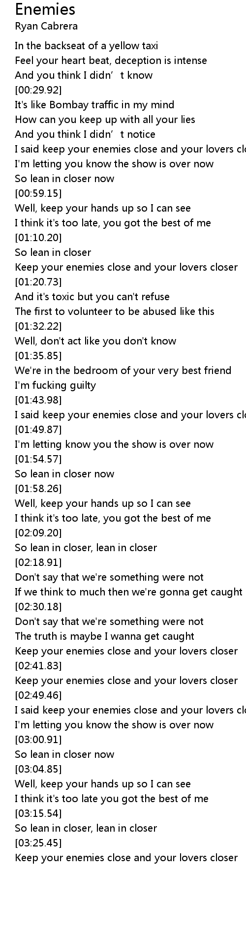| [02:51.27] | I said keep your enemies close and your lovers closer |