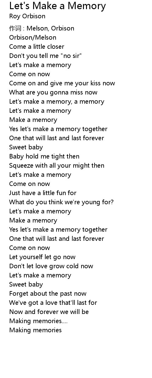 | Let' s make a memory, a memory | |