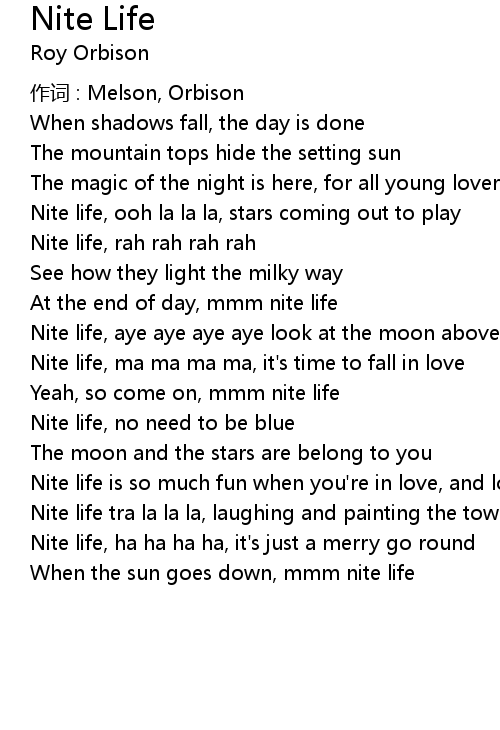 | Nite life, ma ma ma ma, it's time to fall in love | |