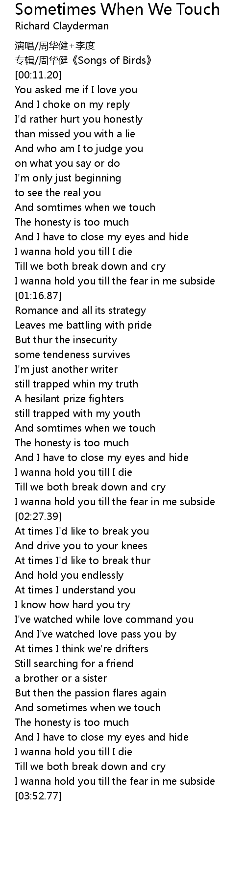 | [01:57.05] | And somtimes when we touch |