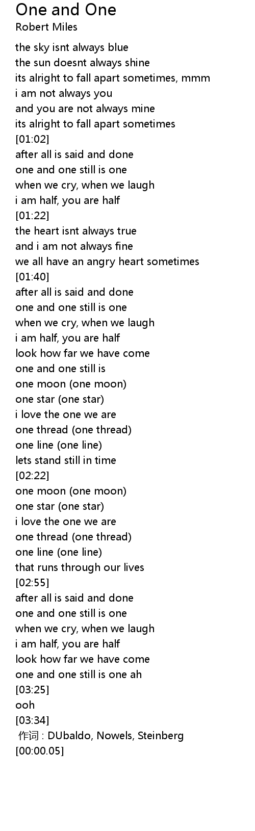 | [01:45] | one and one still is one |