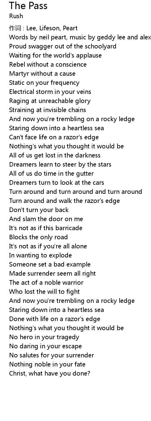 | 作词 : Lee, Lifeson, Peart | |