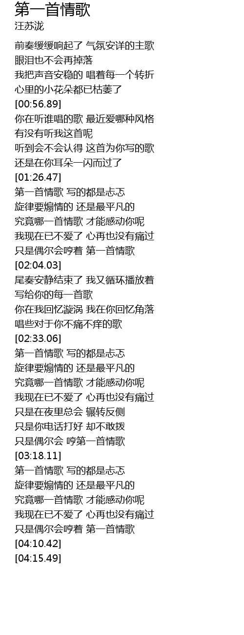 | [03:59.71] | 只是偶尔会哼着 第一首情歌 |