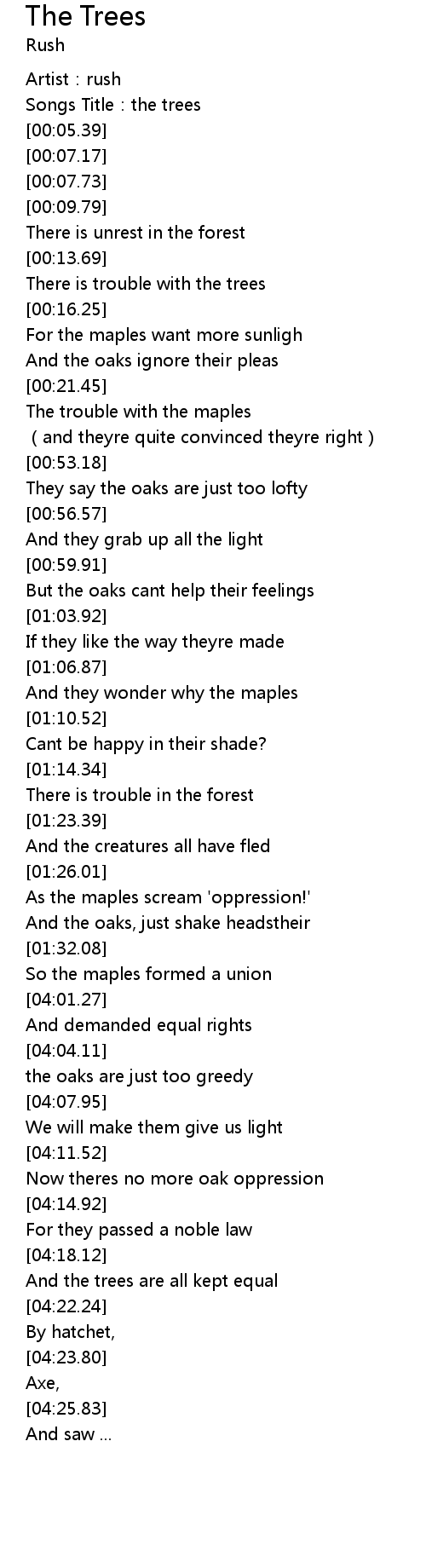 | [00:02.82] | Songs Title:the trees |