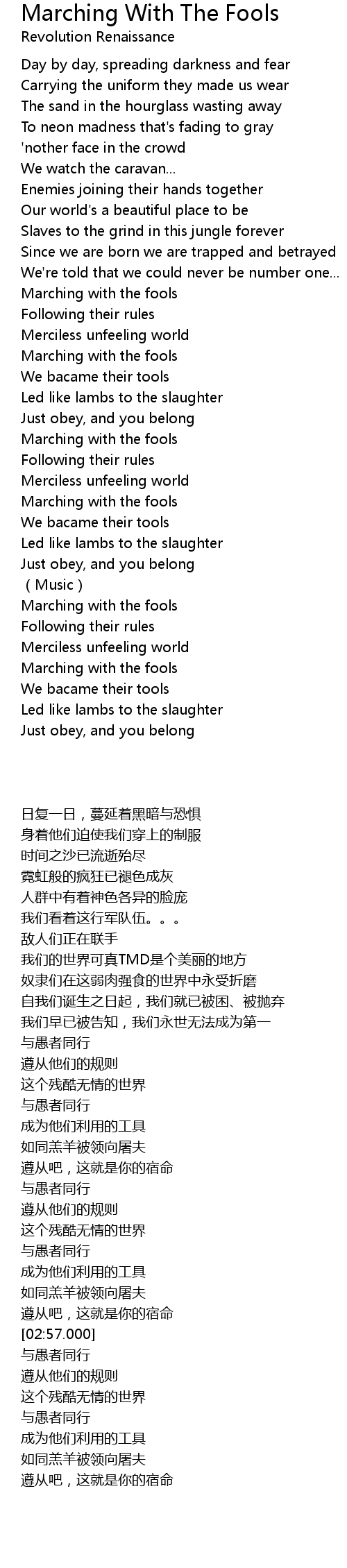 | [02:25.000] | Marching with the fools |