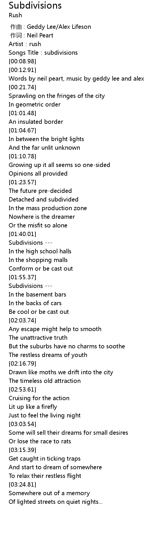 | [00:04.35] | Songs Title:subdivisions |