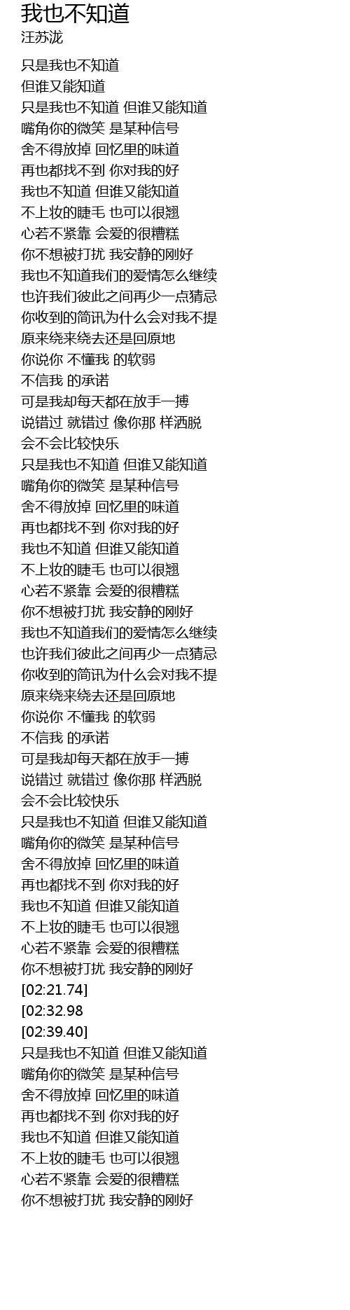 | [00:06.98] | zhǐ shì wǒ yě bù zhī dào |