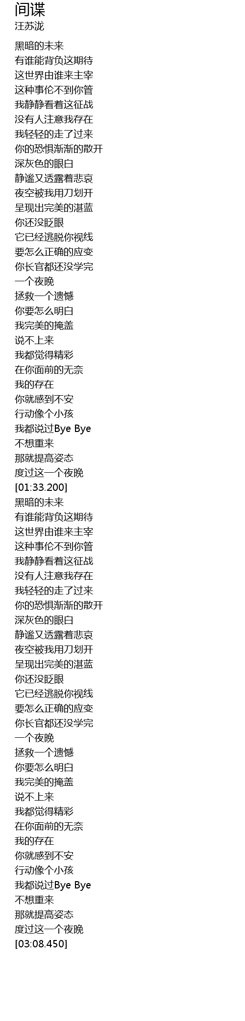 | [01:21.370] | wǒ dōu shuō guò Bye Bye |