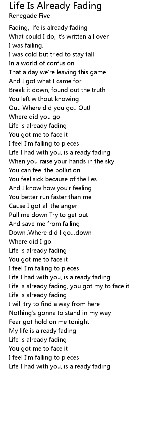 | Song | Life Is Already Fading |