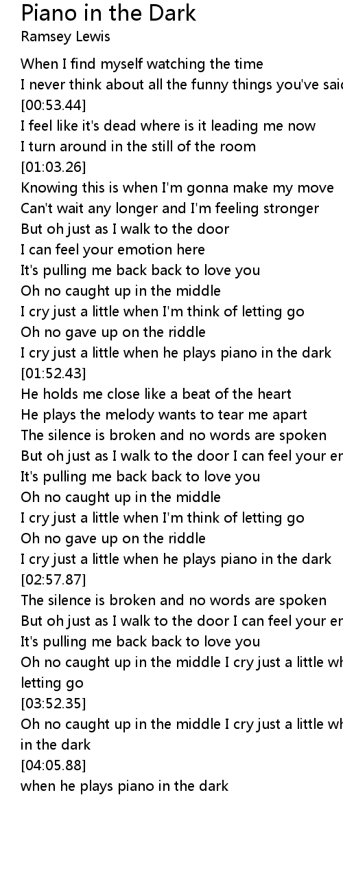 Oh no caught up in the middle I cry just a little when he plays piano in the dark |