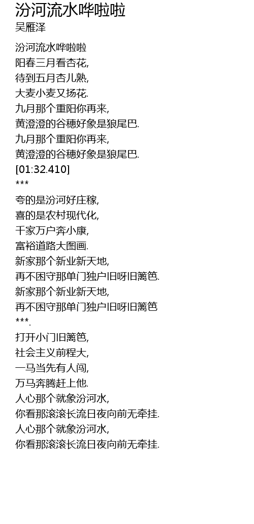 | [01:33.510] | 夸的是汾河好庄稼, |