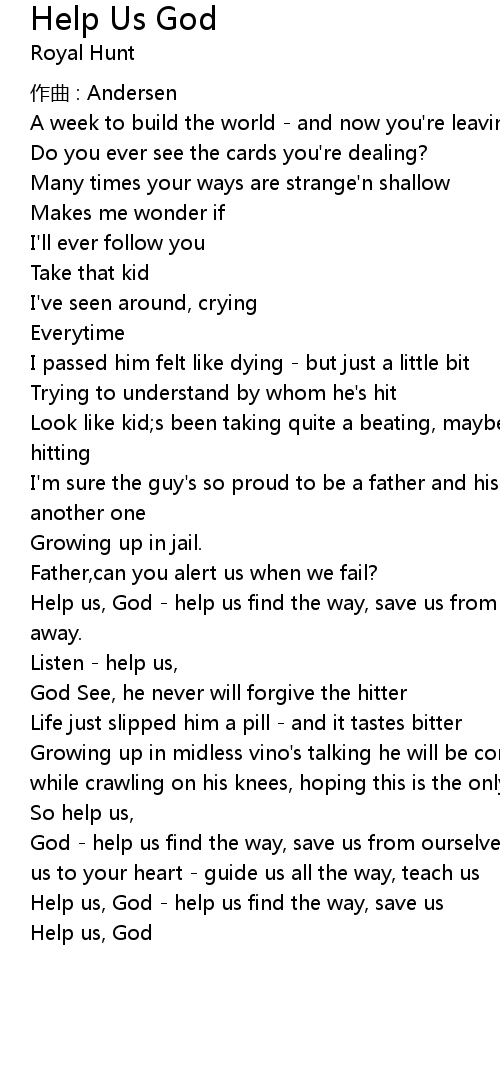| Help us, God - help us find the way, save us | |