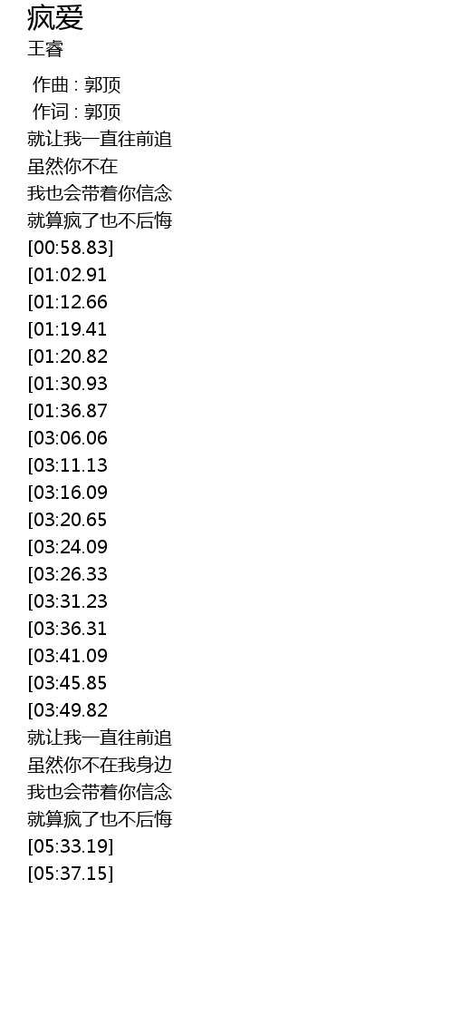 | [04:36.92][03:36.31][02:10.33] | 用这疯狂爱 |