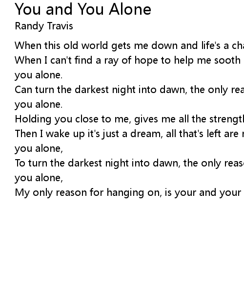 Can turn the darkest night into dawn, the only reason for hanging on, is you and you alone. |
