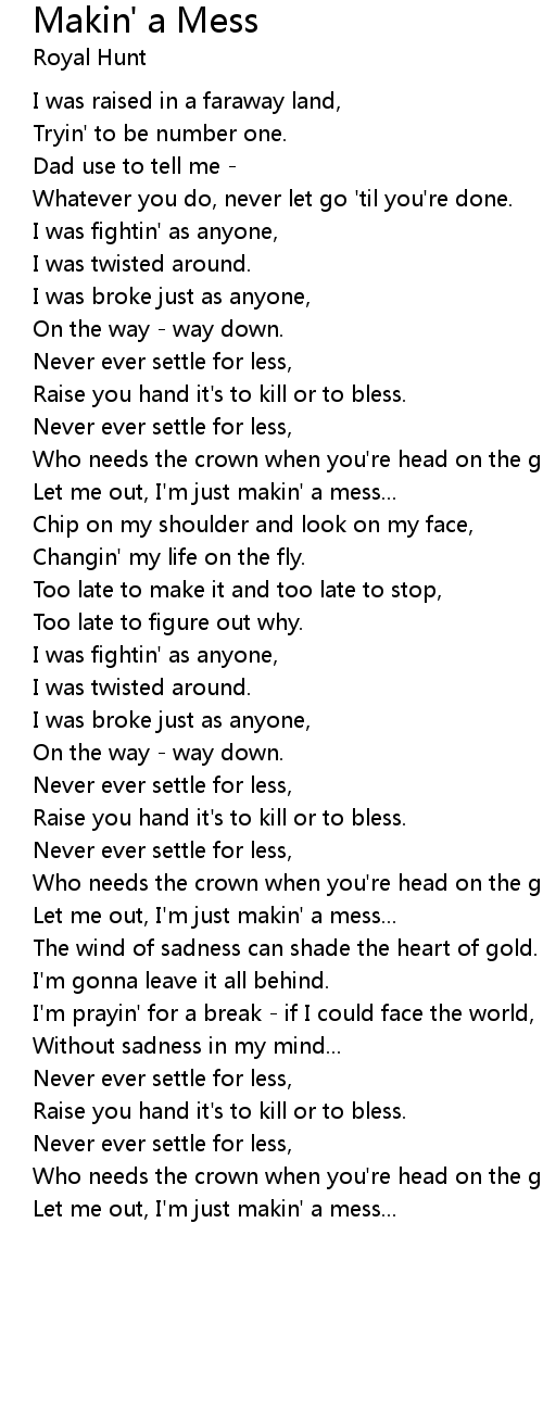 Let me out, I'm just makin' a mess... |