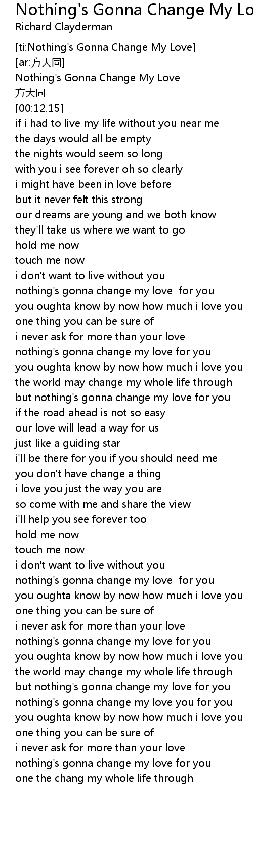 | [00:07.30] | Nothing's Gonna Change My Love |
