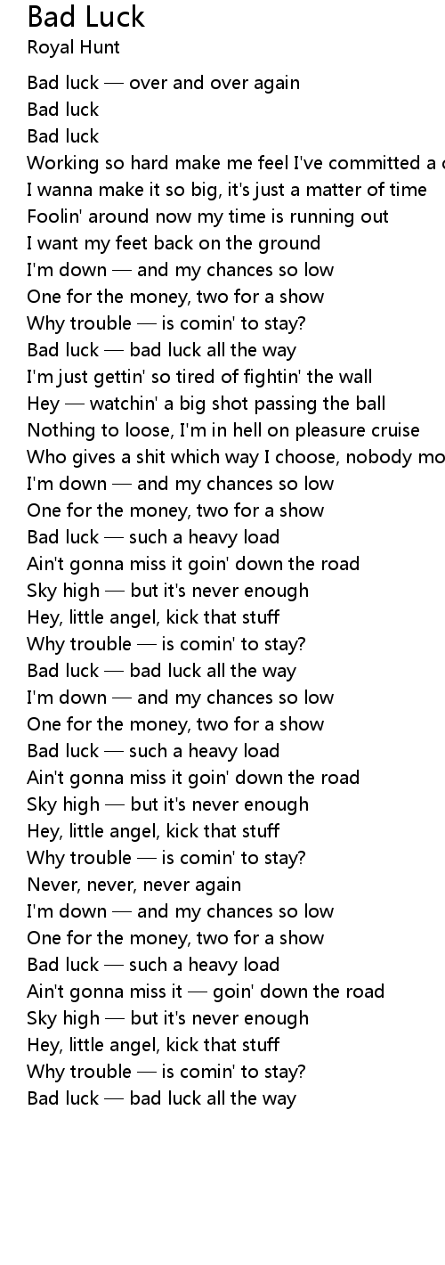 | Bad luck bad luck all the way |