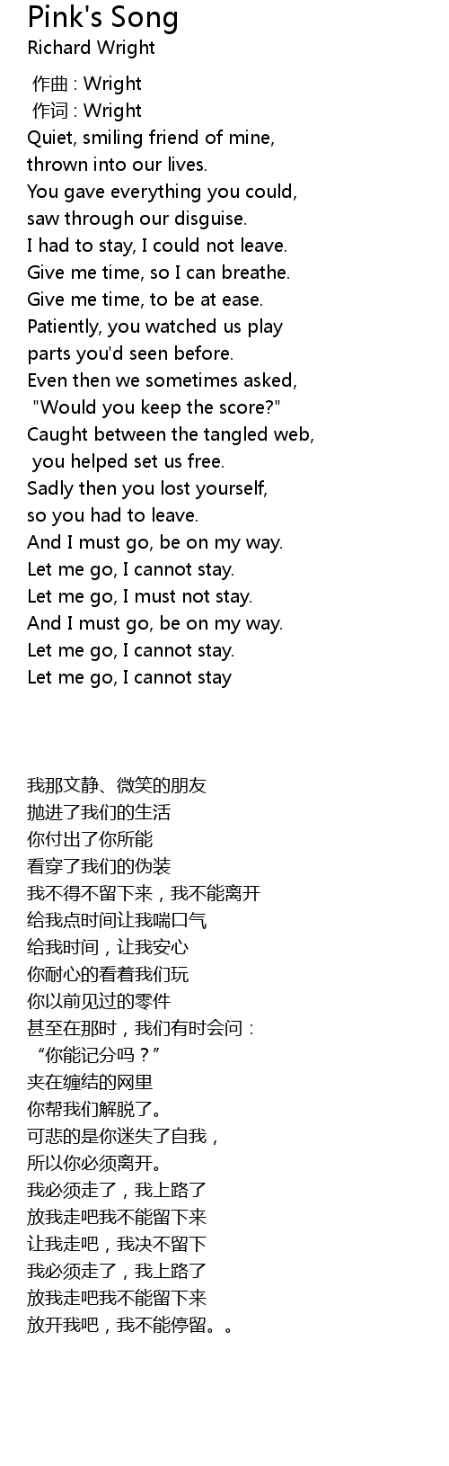 | [03:06.21] | Let me go, I cannot stay |