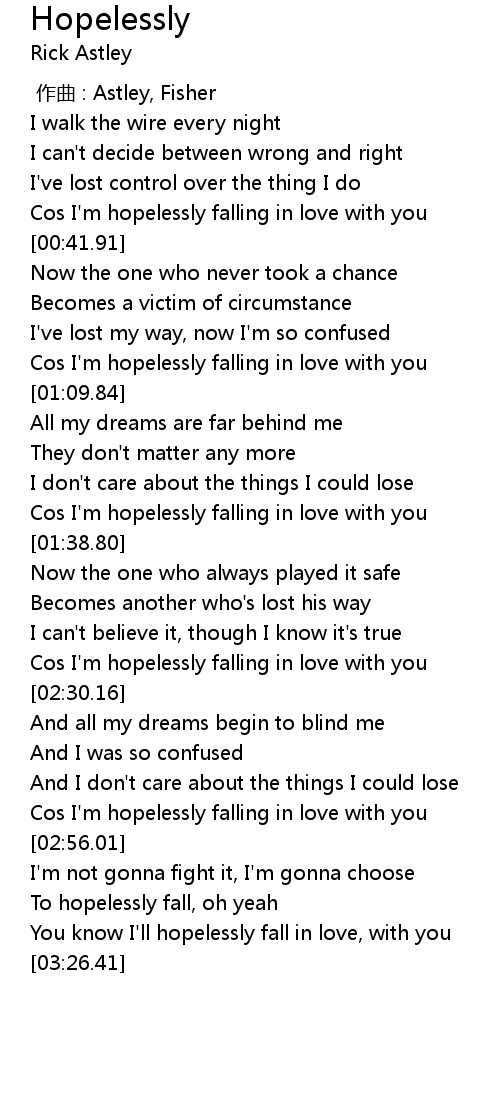| [02:49.49] | Cos I'm hopelessly falling in love with you |