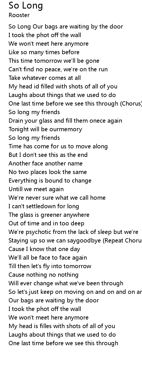 Staying up so we can saygoodbye (Repeat Chorus) |