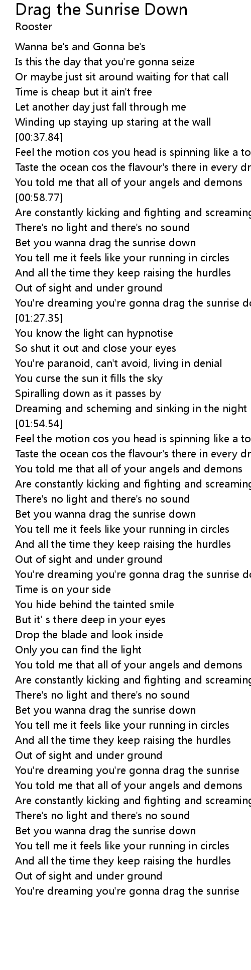 | [02:18.98] | Bet you wanna drag the sunrise down |