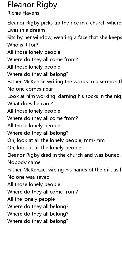 Eleanor Rigby picks up the rice in a church where a wedding has been