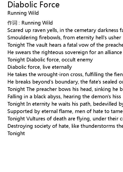 | Tonight Diabolic force, occult enemy | |